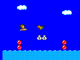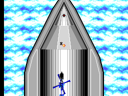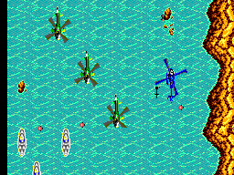 ステージ5のボス「ドクターT.W」ボートに乗って爆弾を投げながら逃亡する