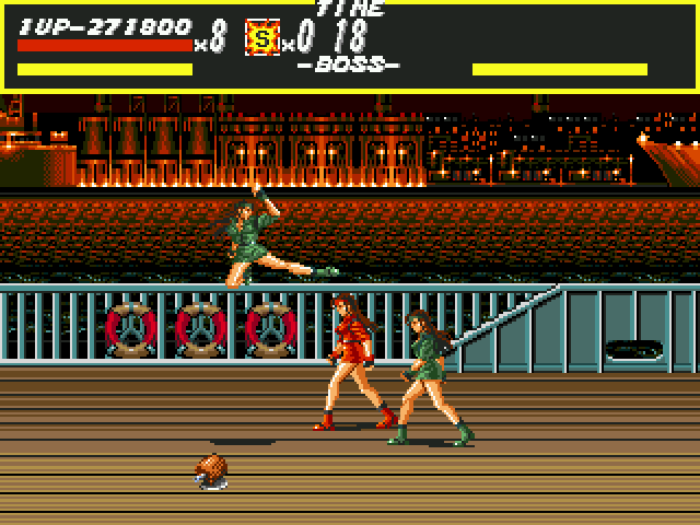 アーケード版では2体同時に登場するが、スーパーファミコン版は1体ずつの登場なので倒しやすいと思います