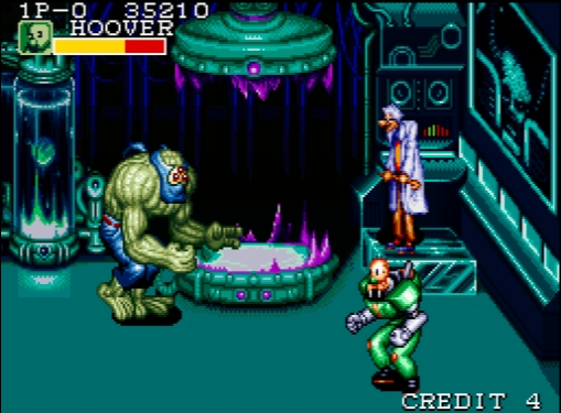 ステージ4のボス「モンスター」ドクターT.Wの作り出した緑色の筋肉質のモンスター